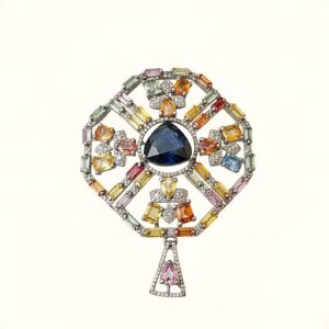 Multi Gemstone Wheel Brooch, Sapphire Diamond Style, Vintage Inspired Pendant Pin