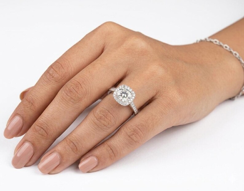 Celebrate your special moment with this elegant 1.25ct Moissanite Halo Engagement Ring, designed to shine with timeless brilliance. The round-cut center moissanite is surrounded by a delicate halo, enhancing its sparkle and creating a stunning diamond-like look.