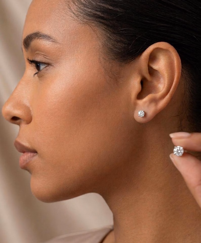 Experience timeless elegance with our round cut moissanite stud earrings, a perfect blend of classic beauty and modern brilliance. Designed for women who love minimalist luxury, these stud earrings add effortless sparkle to every occasion.